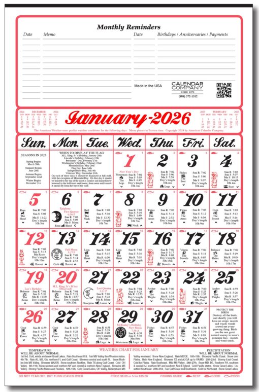 The Almanac Calendars have been manufactured for over 142 years and contains over 4900 bits of information including: